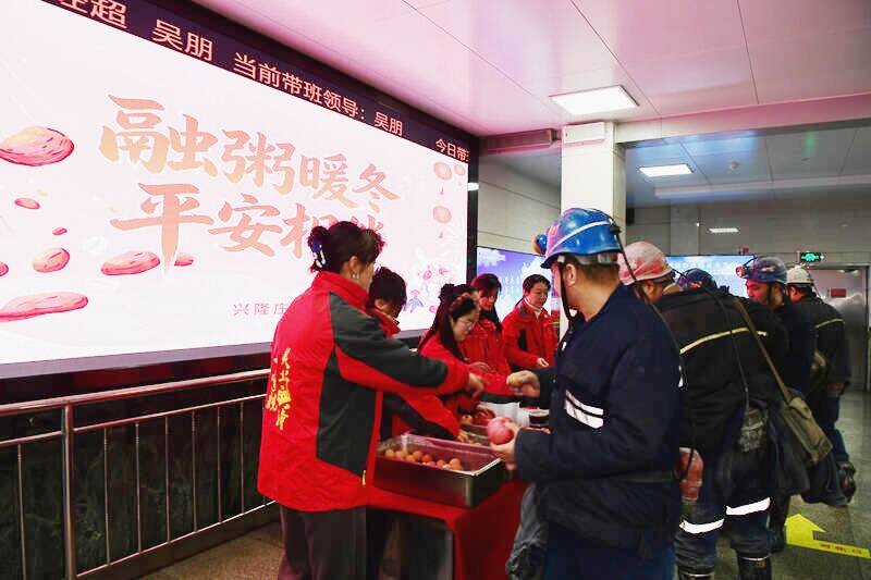1月26日,“腊八节”当天,兴隆庄煤矿组织进井口、进区队开展“融粥暖冬 平安相伴”“巾帼送暖到一线 腊八共筑安全年”慰问活动,以“娘家人”的暖心服务助矿井安全“粥”到、保生产“粥”全。